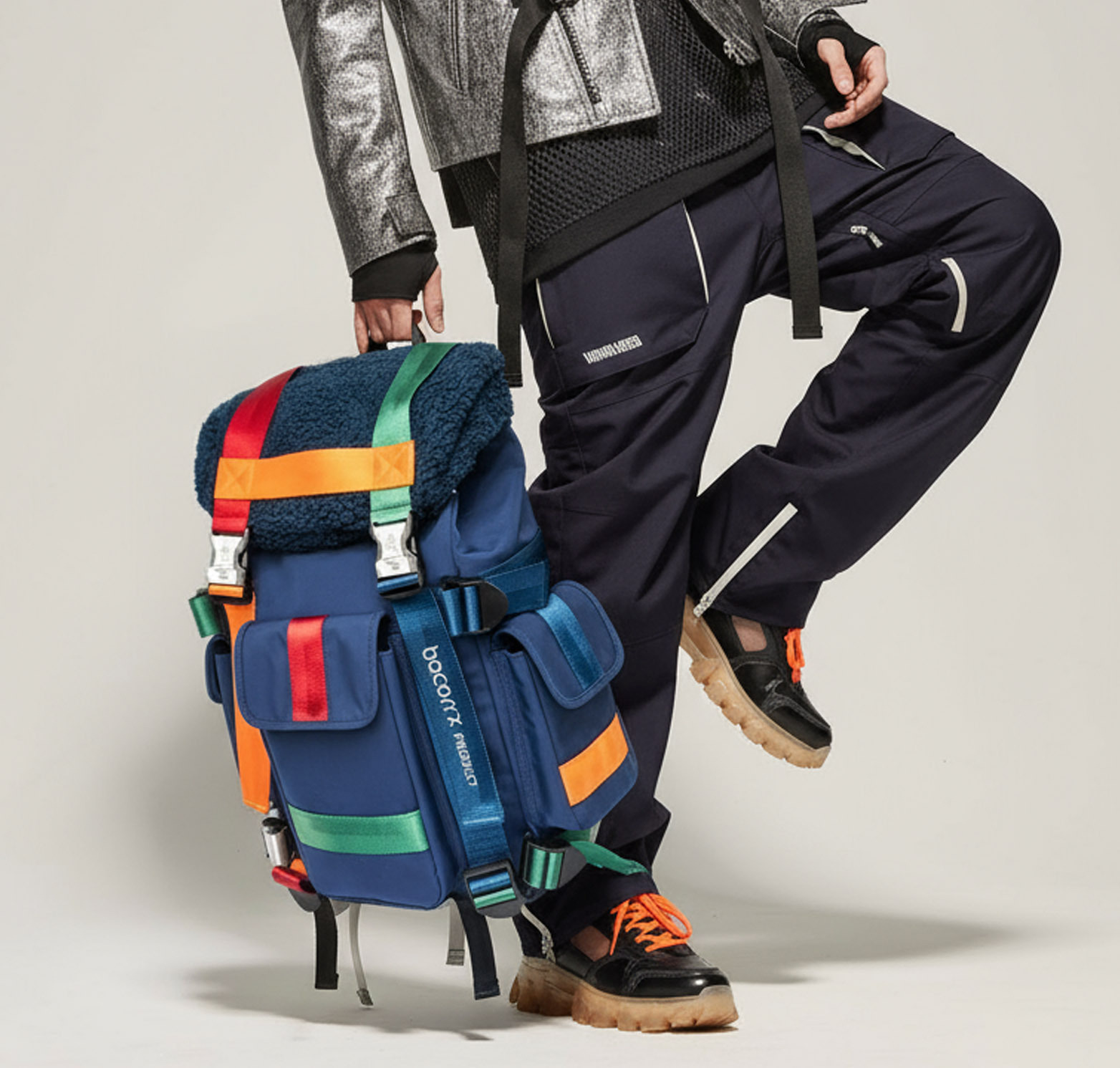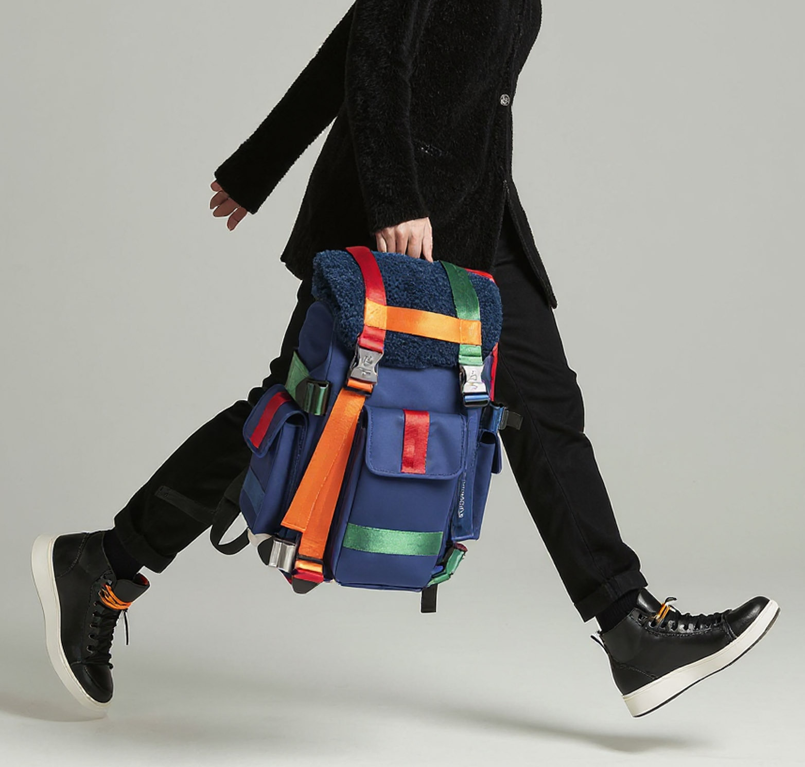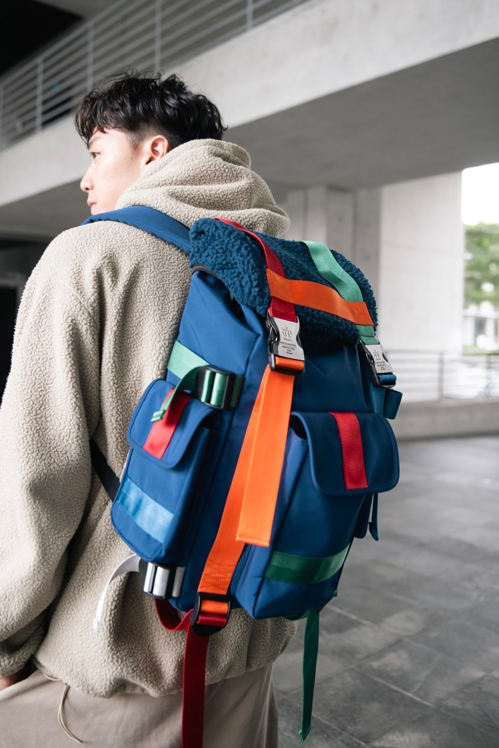 袋蓋為異材質的特殊刷毛料作搭配更顯出此款的多變獨特風格。
