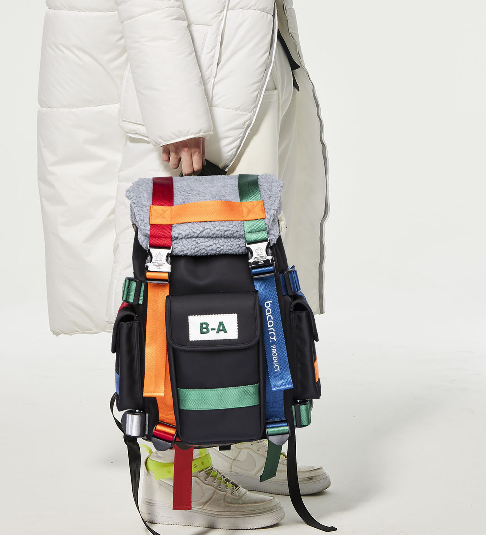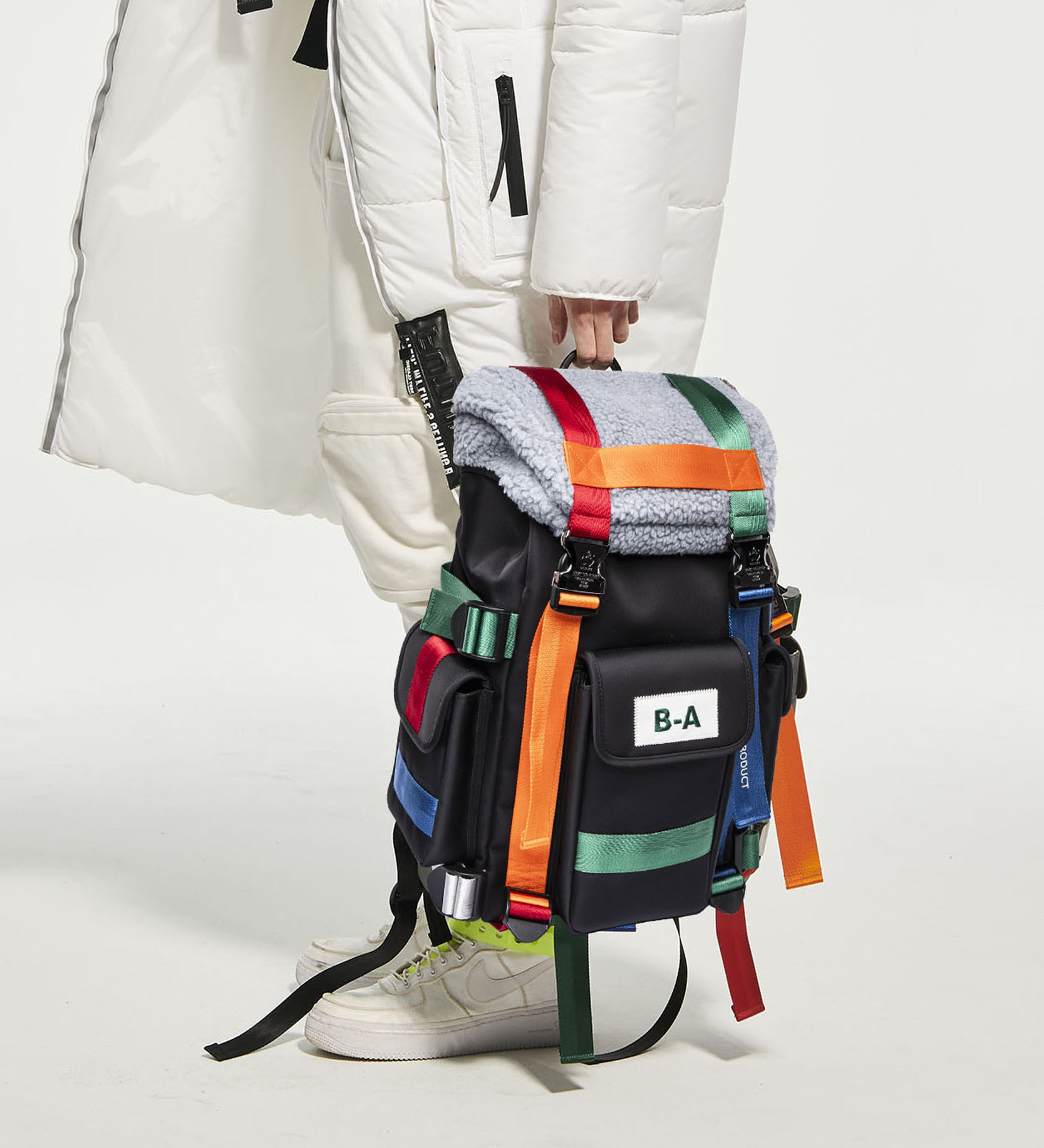 袋蓋為異材質的特殊刷毛料作搭配更顯出此款的多變獨特風格。